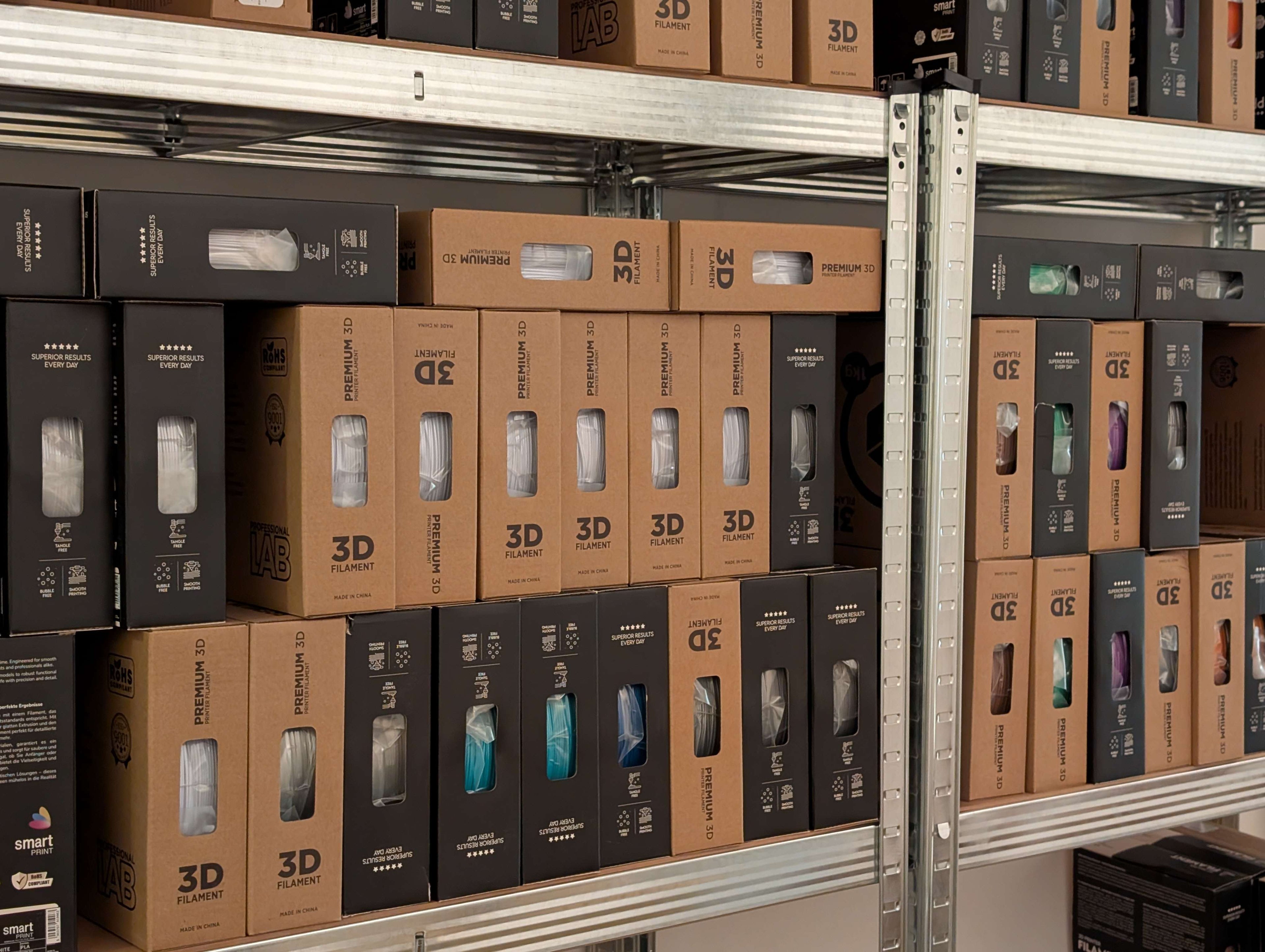 Es gibt keinen Haken. Unsere Strategie ist einfach: Wir kaufen große Mengen direkt ab Werk und umgehen so unnötige Zwischenhändler und teures Marketing. Dadurch können wir Filamente anbieten. Smart Print Und Professional Lab (Prof. lab) Zu Preisen, die um mehrere zehn Prozent niedriger sind als bei der Konkurrenz, ohne Kompromisse bei der Materialqualität einzugehen. Sie bezahlen für das Filament, nicht für die Marke auf der Verpackung.